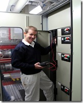- Today (2/1/12), we headed north – away from Antarctica and toward our next port of Ushuaia (the southernmost city in the world). Tonight and tomorrow, we’ll pass over some of the roughest waters thus far – with 20-foot swells expected. Thankfully, they haven’t started yet! After lunch today, some friends invited us to join their son-in-law, Jacob, for a tour of the engine room and bridge. How cool! Turns out, Jacob is a 3rd Engineer.